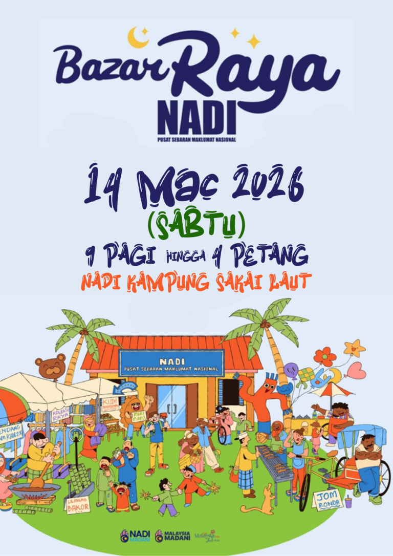 KINI KEMBALI!!! Tarikh: 14 Mac 2026 Hari: Sabtu Masa: 9 pagi hingga 4:00 petang Tempat: NADI Kampung Sakai Laut Bersempena Hari Raya Aidilfitri yang bakal tiba, NADI Kampung Sakai Laut berminat menjemput para peniaga, usahawan & penjaja produk berikut untuk […]