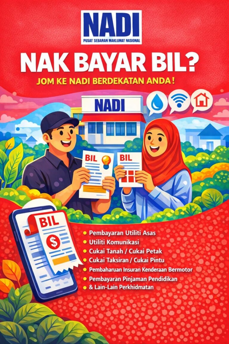 Jom datang ke NADI untuk membuat pembayaran bil utiliti menggunakan Perkhidmatan POS Malaysia Berhad.